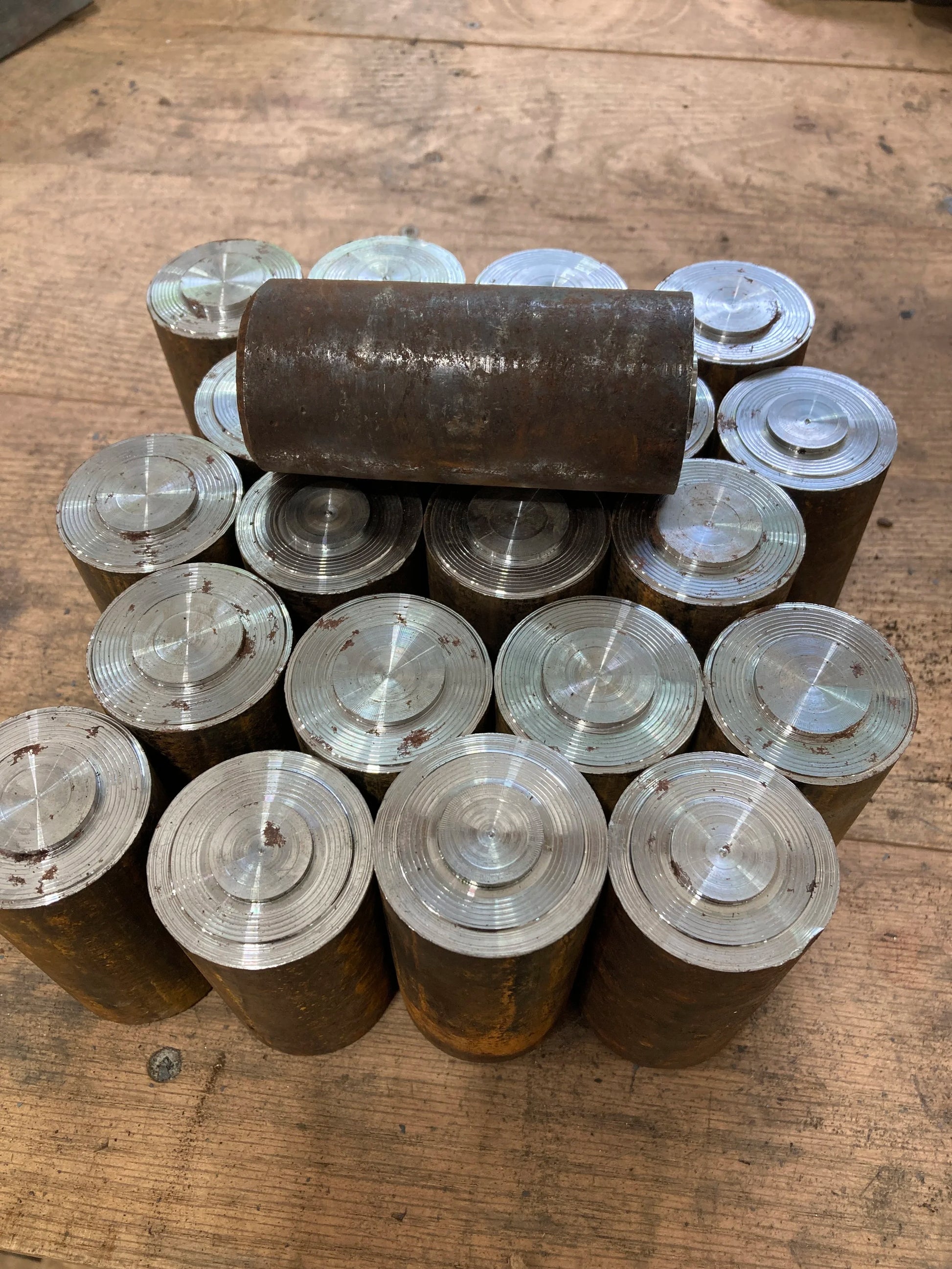 USA production Timken Steel. These industrial drops are slices from 1-3/8” round bar that vary from 3” - 4” long. Each weighs approximately 2-1/4 pounds. Limited stock.