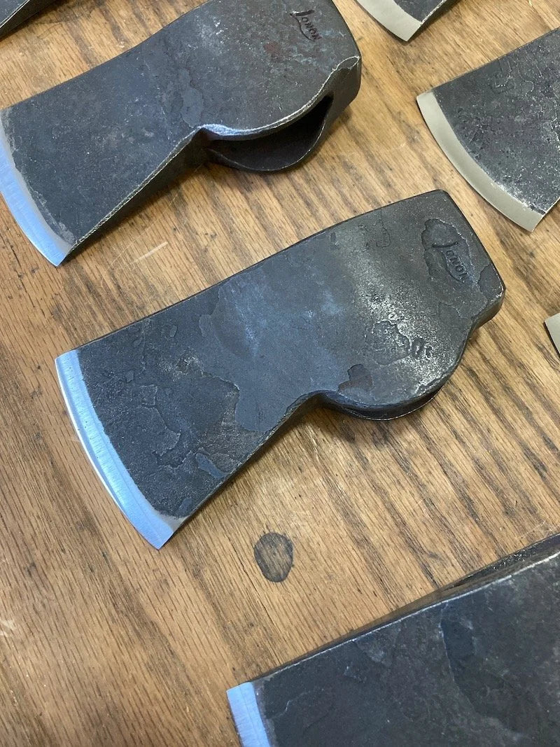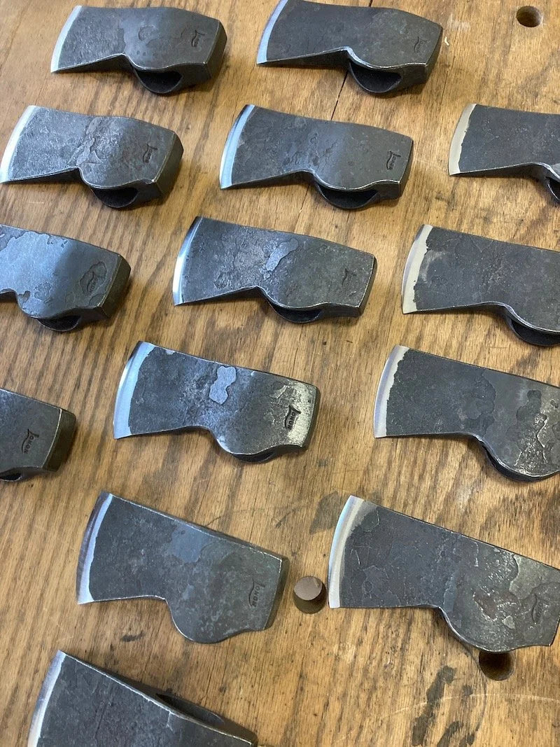 Have you ever wanted to make your own axe handle? Here is your chance. These axe heads were left over from our prototype batch of Ashford hatchets. Forged from American made 5160 steel, they have a 2-1/4” to 2-1/2” cutting edge, are 4-3/4” long, and weigh approximately 1 pound. Experience the satisfaction of carving your own personal handle. Only 14 available.