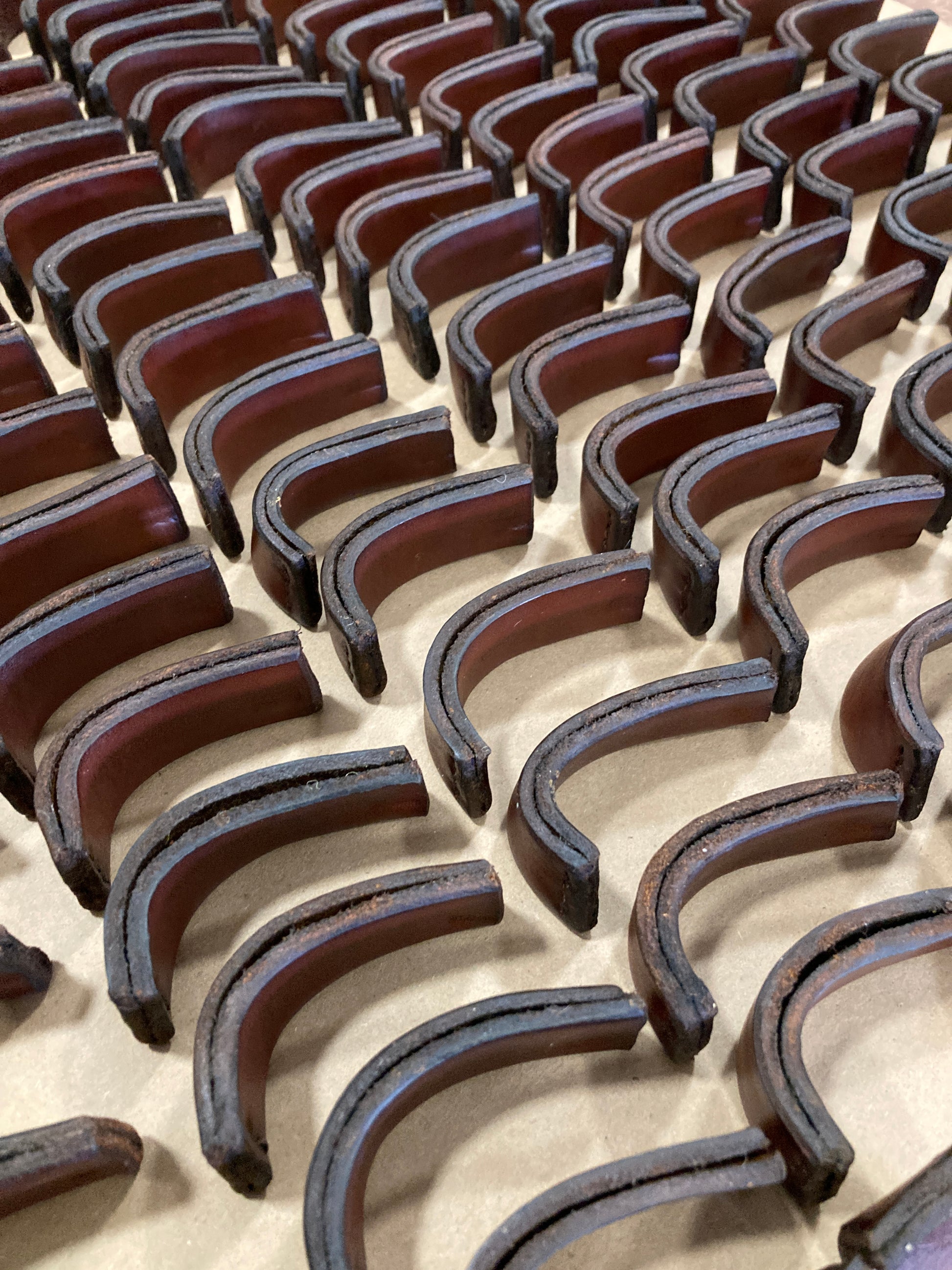 This blade cover is hand stitched of Wicket & Craig English bridle leather. Each one is wet molded to fit our spoon knives both compound and open sweeps. Keep your sharp blade protected and close at hand.