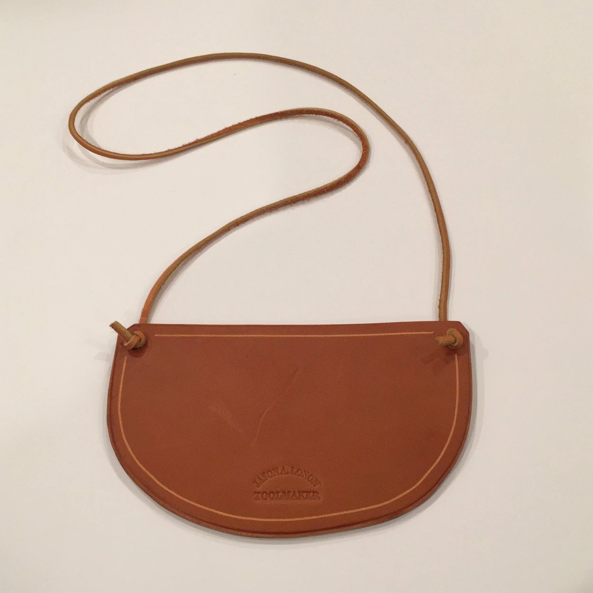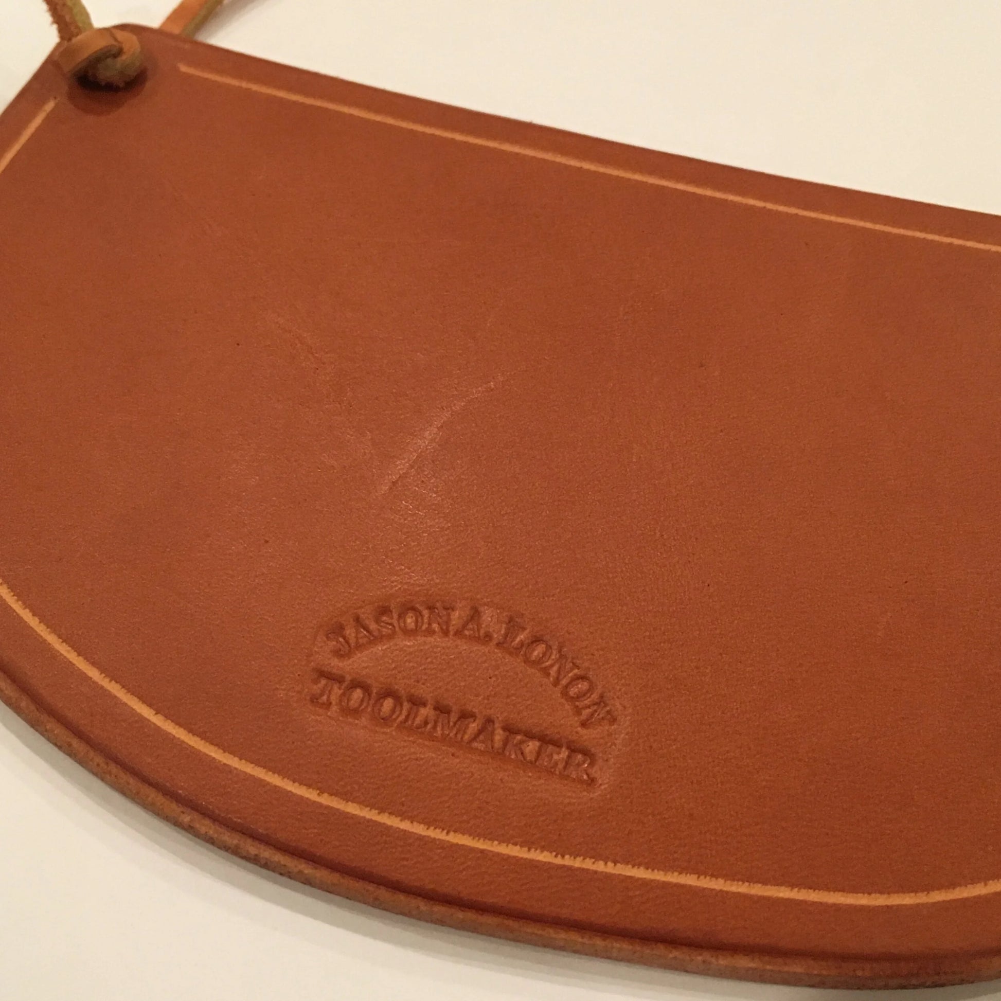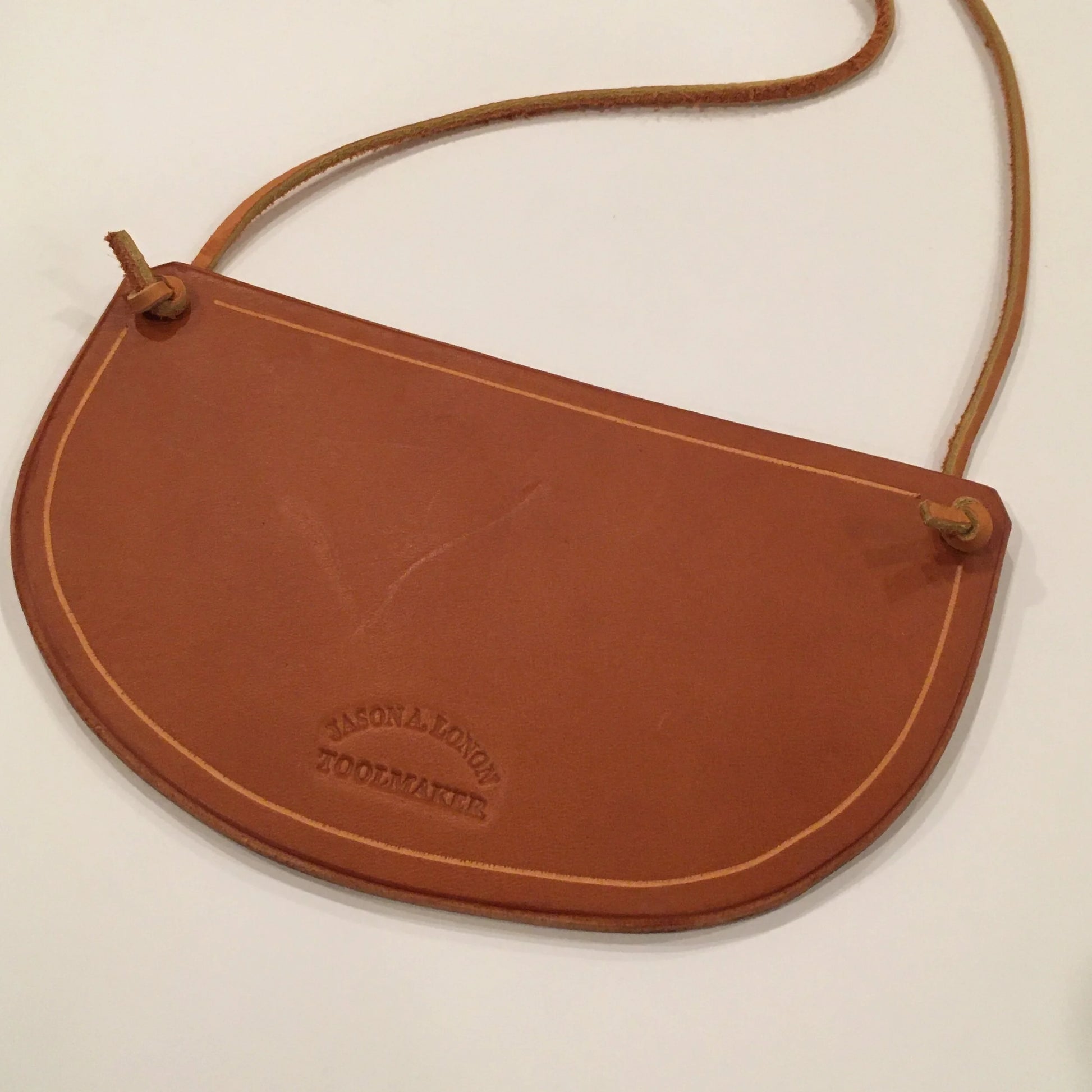 Since these are belly leather, some are quite supple for being so thick, and some have scars. The edges are burnished and have a border grove. Each one is stamped with my logo, and comes with an adjustable latigo leather neck string.