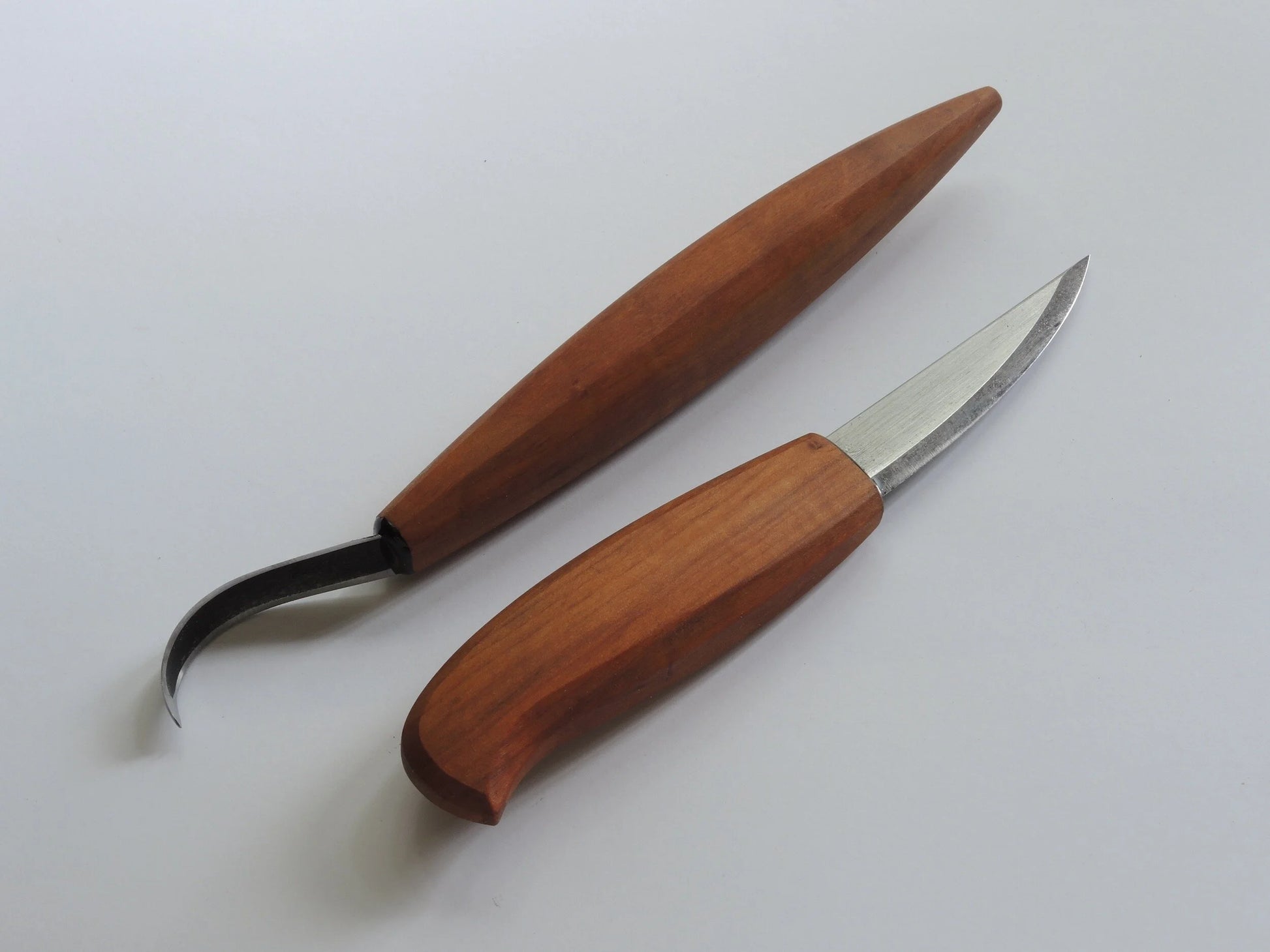 This spoon carving set includes our long handled, left-hand spoon knife and 3” sloyd knife, with matched handles of extra special woods.