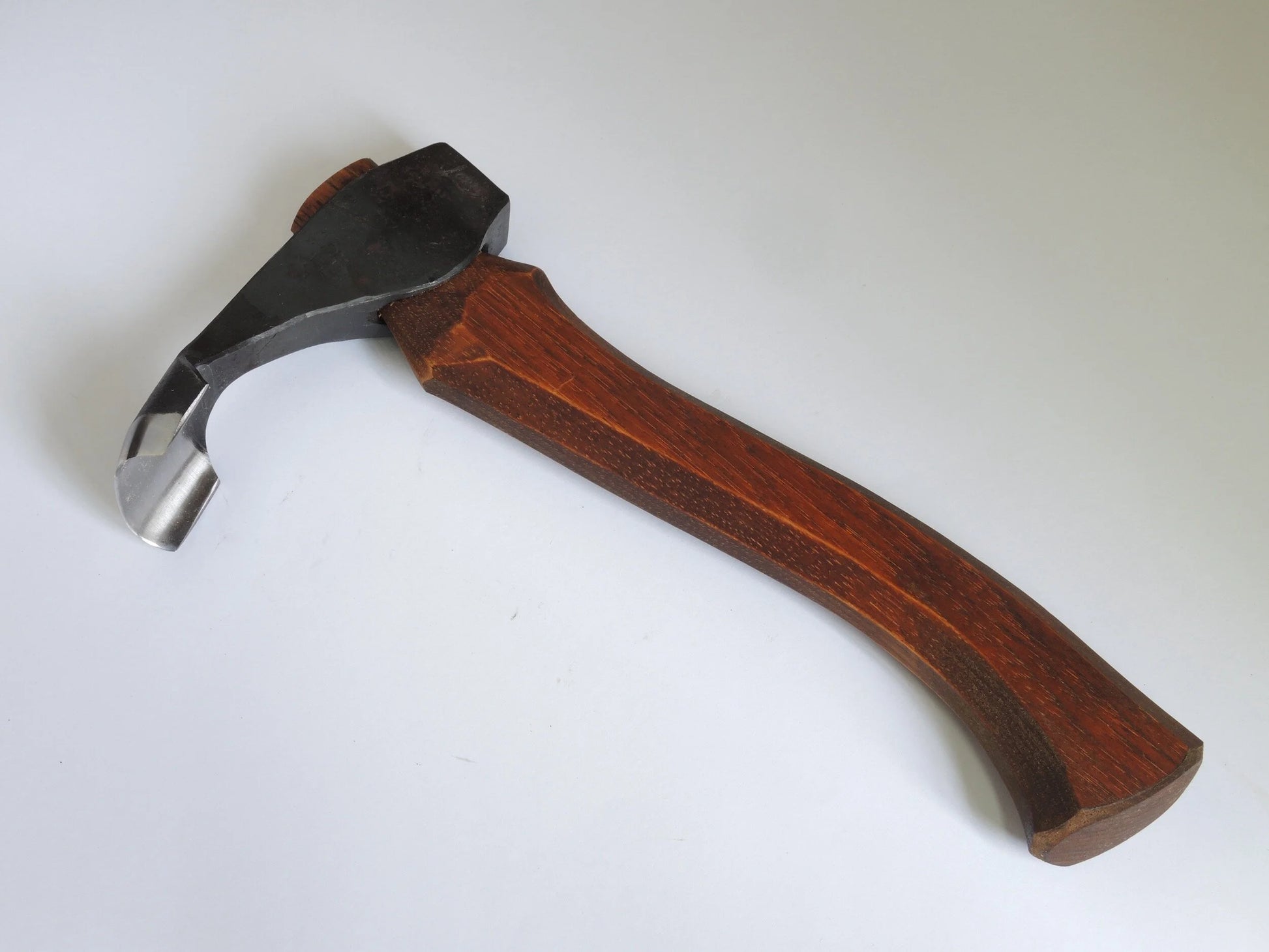 The small bowl adze is forged from solid 4140 alloy steel. It has a hand crafted hickory or ash handle, stained and finished with a penetrating oil/varnish mix. This is the same head as my small bowl adze with flat center, only hung on a 12" hickory handle similar to my standard carving axe. The blade has an essentially flat section in the center and turned up lips on the corners. This gives a smoother finish than my standard small bowl adze, and is an excellent choice for carving chair seats. Blades are approximately 1 3/4" - 2" across. Overall weight varies between 26 - 30 oz.